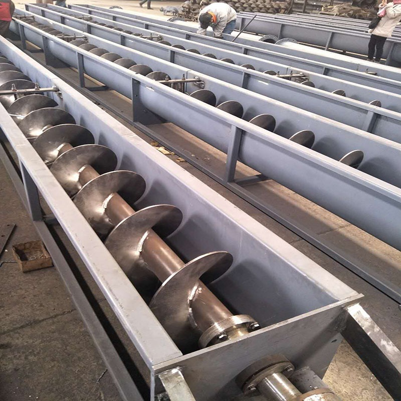 无中心轴干扰,对于输送带状、易缠绕物料有特殊的优越性。 无轴螺旋输送机用途: xLS型系列无轴螺旋输送机 用于污水处理厂输送中细格栅其栅条净距50mm的除污机栅渣和 压滤机泥饼等物料。 环保性能好。采用全封闭输送和易清洗的螺旋表面,可保证环境卫生和所送物料不受污染、不泄漏。 扭距大、能耗低。由于螺旋无轴,物料不易堵塞,排料口不堵塞,因而可以较低速度运转,平稳传动,降低能耗。扭距可达4000N/m。输送量大。输送量是相同直径传统有轴螺旋输送机的1.5倍。输送距离长。单机输送长度可达60米。并可根据用户需要,采用多级串联式安装,超长距离输送物料。能机动工作。我公司开发生产的移动型无轴螺旋输送机,能机动工作,一机多用。既可下方出料,又可端头出料。采用特制衬板,该机可在高温下工作。结构紧凑,节省空间,外型美观,操作简便,经济耐用。