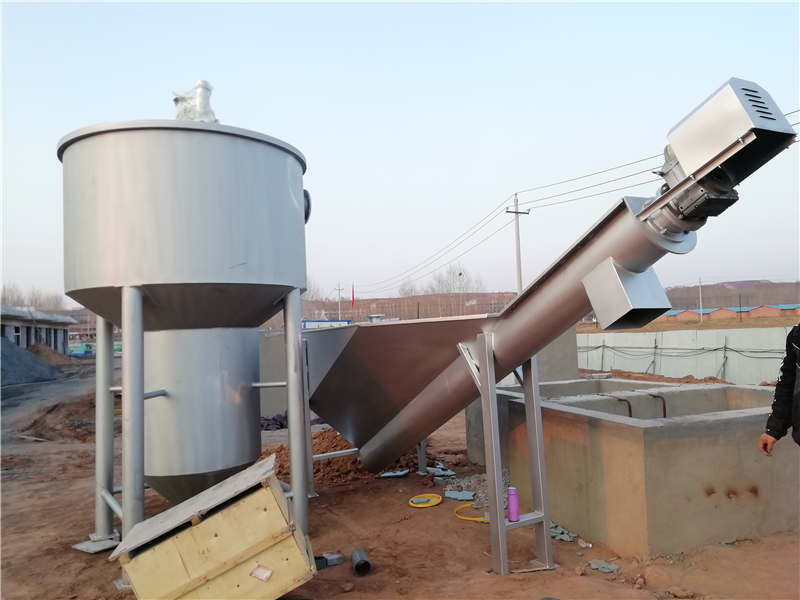 沉砂池的作用就是去除水中的砂粒,池体为圆形钢结构污水进入沉砂池后,产生旋流,由于在池底部切线方向进行搅拌,使进入沉砂池得水、砂向池底流动,通过调节搅拌强度得大小来加强水得旋流,保持了相对稳定得旋流线速度。由于池内得水产生了螺旋状环流,在重力作用下,水中的砂子下沉,并向池中心移动,由于越靠中心水流断面愈小,水流速度加快,最后将沉砂落入砂斗。而较轻的有机物,则在沉砂池中间部分与砂石分离.池内得环流在池壁处向下,到池中则向上,加上搅拌得作用,有机物在池中心部向上升起,并随出水水流一并排出。