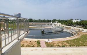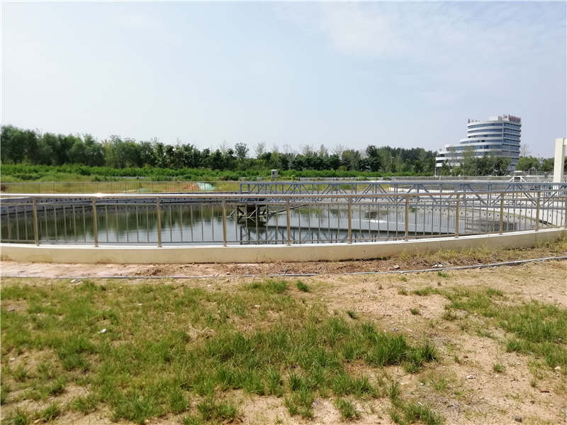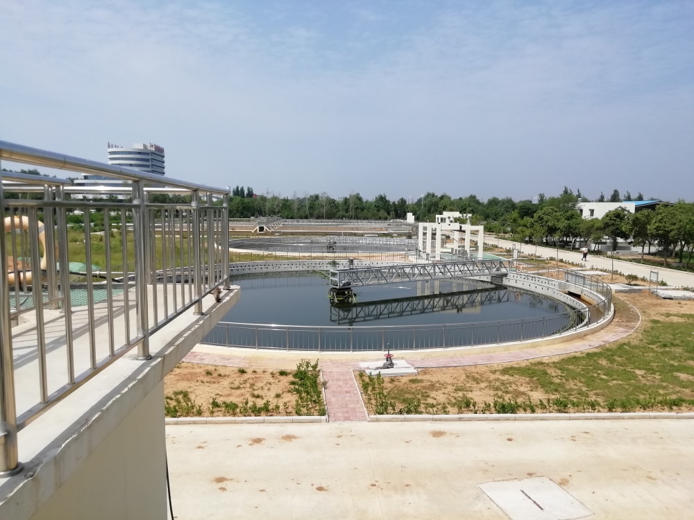 工作时,污水由中心支墩经导流筒扩散,混合液中粗大的颗粒经沉淀后在池底形成污泥层,比重较轻的浮于液面,工作桥在周边驱动机构的带动下,沿中心支座缓慢旋转,带动刮臂板将污泥逐层由池周向中心集泥孔排出池外,浮渣刮板沿导流筒将浮于液面的浮渣抛向池周的排渣斗内,排出池外。